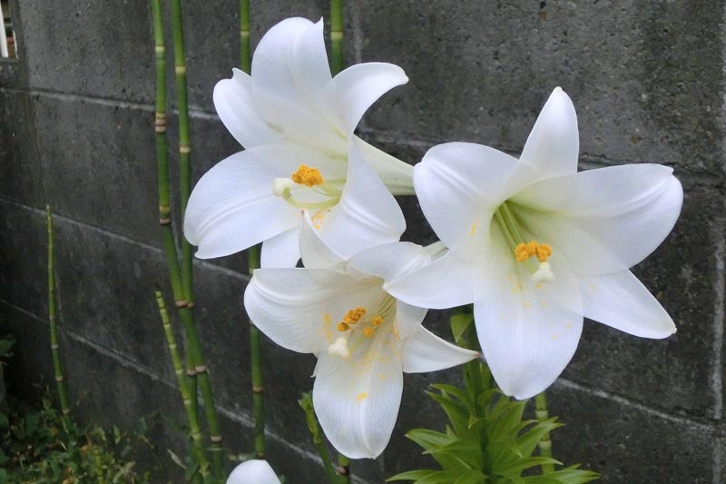 3)こちらは「テッポウユリ(鉄砲百合)」 ユリ科かと思います。