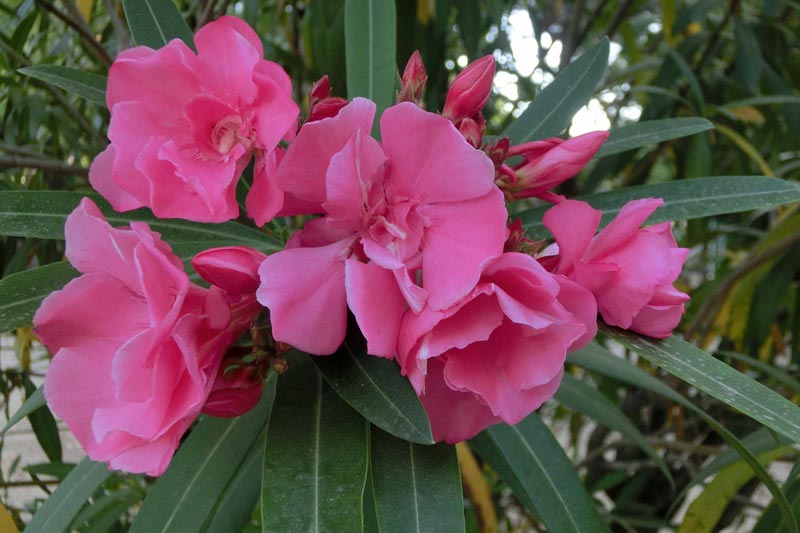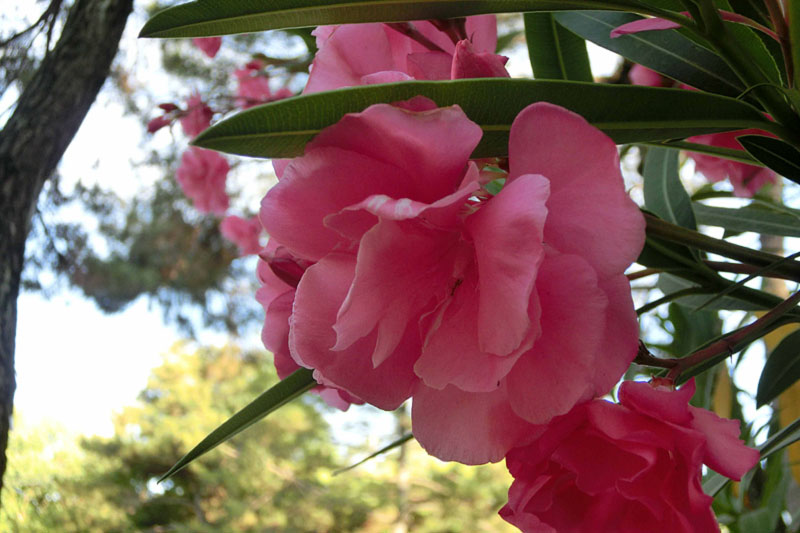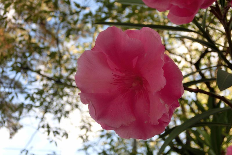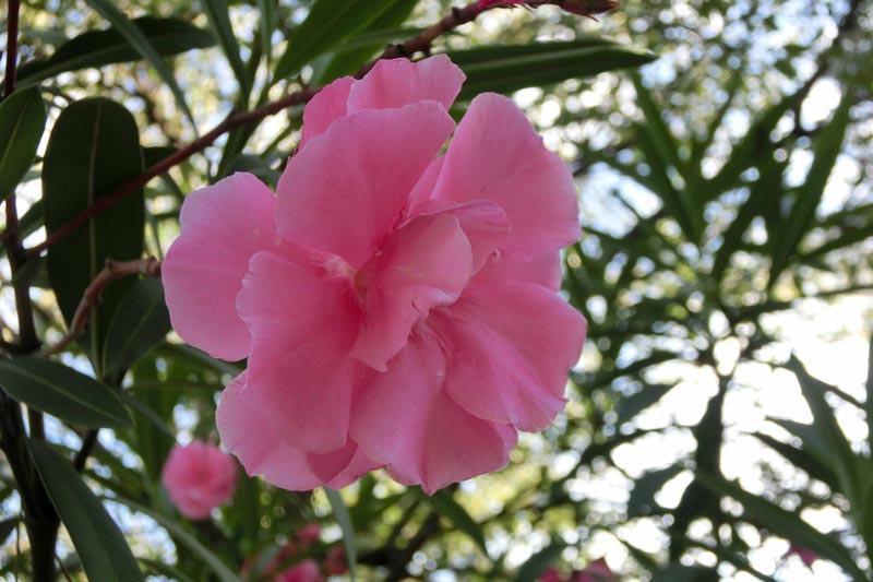 2)近くにある夾竹桃は、どの花も八重咲きばかりで、一重の花も撮ってみたいです。