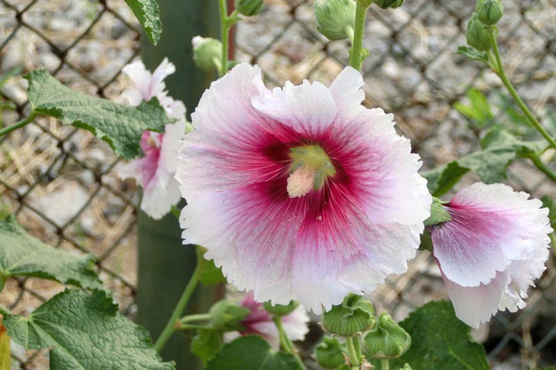 立葵、特に白い花で、中心が赤いのが好きなのですよ。