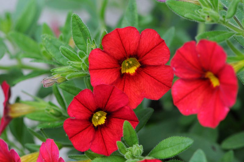 赤い花の方は、多分「ペチュニア」の一種かと思いますが「ミリオンベル」かどうかは不明ですね。