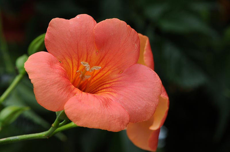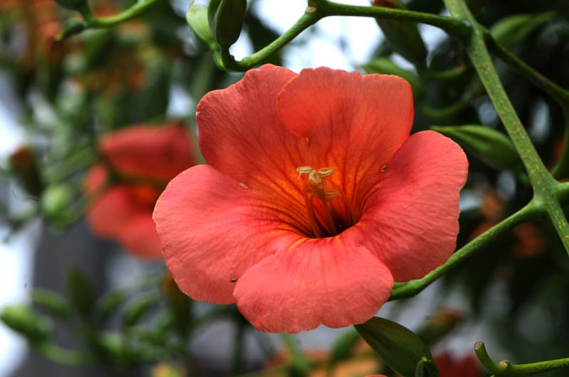 5)こちらは、橙色の「ノウゼンカズラ(凌霄花)」 ノウゼンカズラ科です。