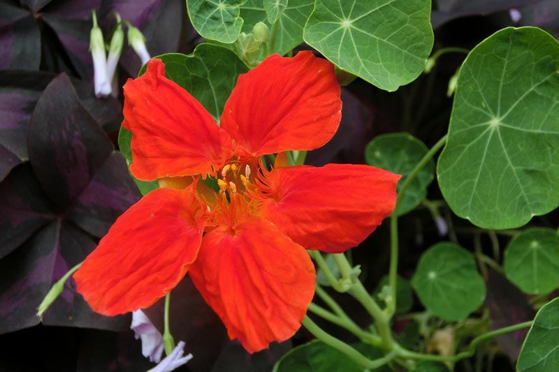 そちらでは、ナスタチウムと呼ばれているのですか、この名は、正式にはオランダガラシ(クレソン)属を指す学名であって、似た味をもつために転用された通称らしいですね。