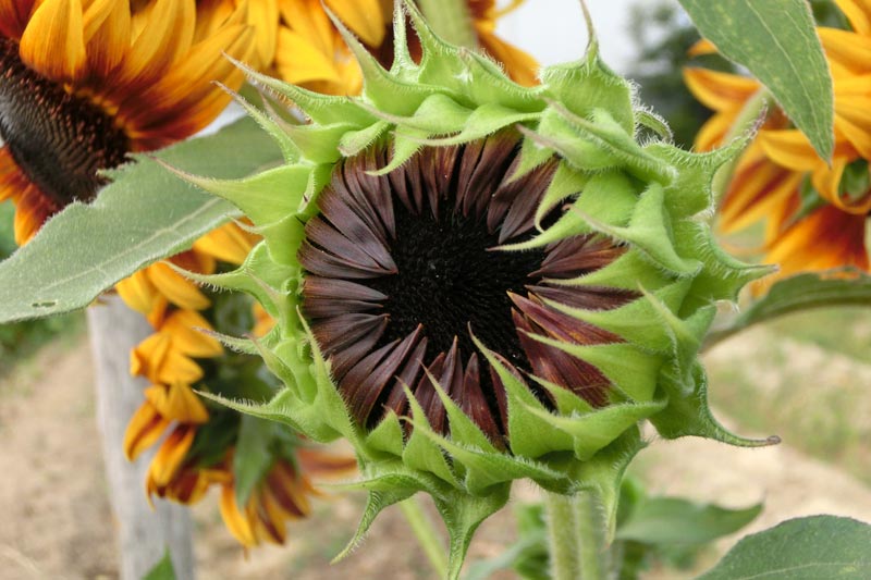 5)この蕾は、前回のヒマワリの蕾とまた感じが違って見えますね。