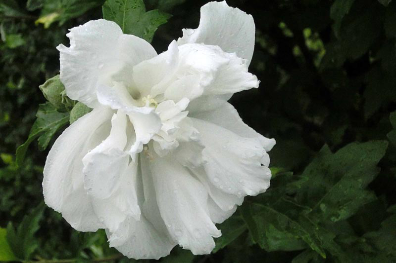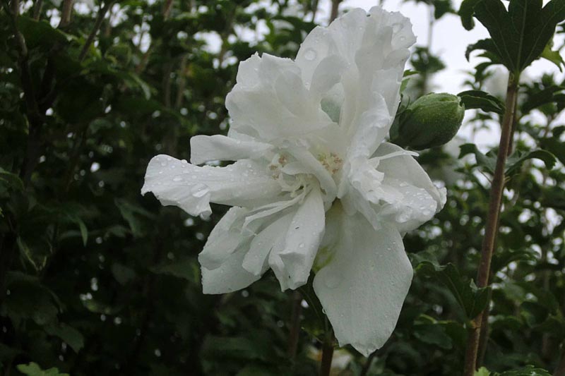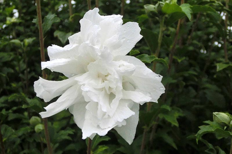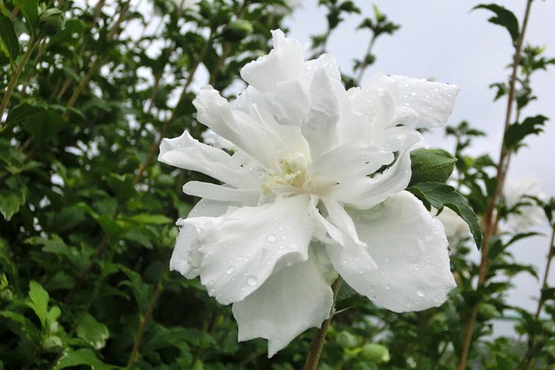 5)こちらも同じく純白の「ムクゲ(木槿)」 アオイ科のお花ですが、八重咲き品種です。