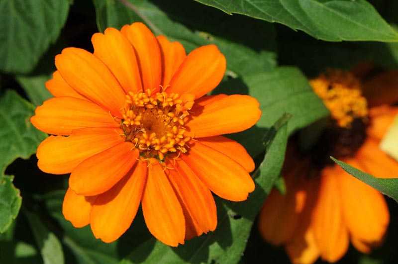オレンジと黄色のヒャクニチソウ、鮮やかですね。
