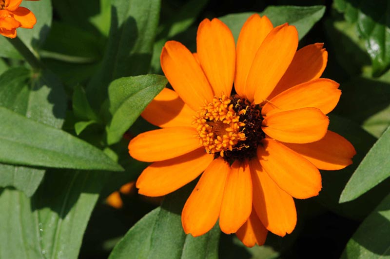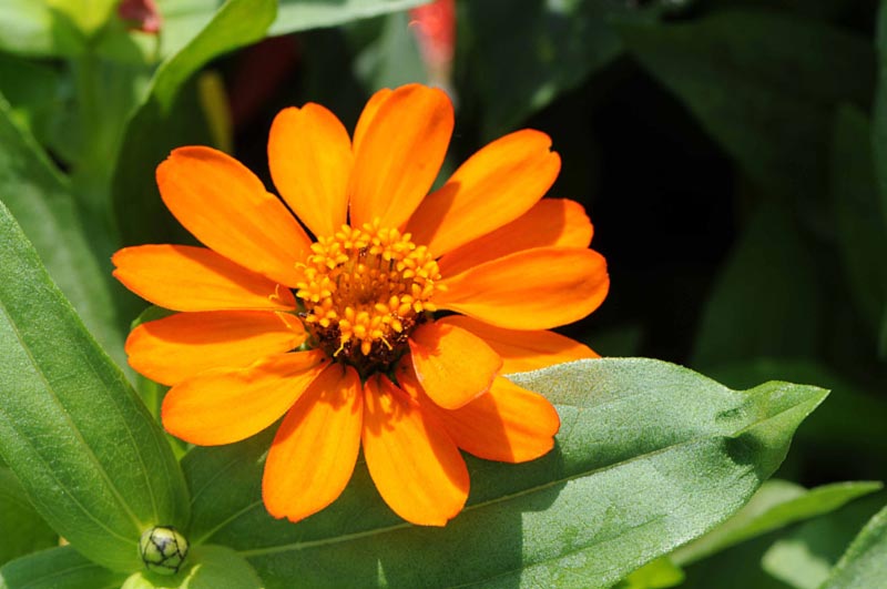 1)最初のお花は「ヒャクニチソウ(百日草)」 キク科 別名:ジニアのオレンジ色のお花です。