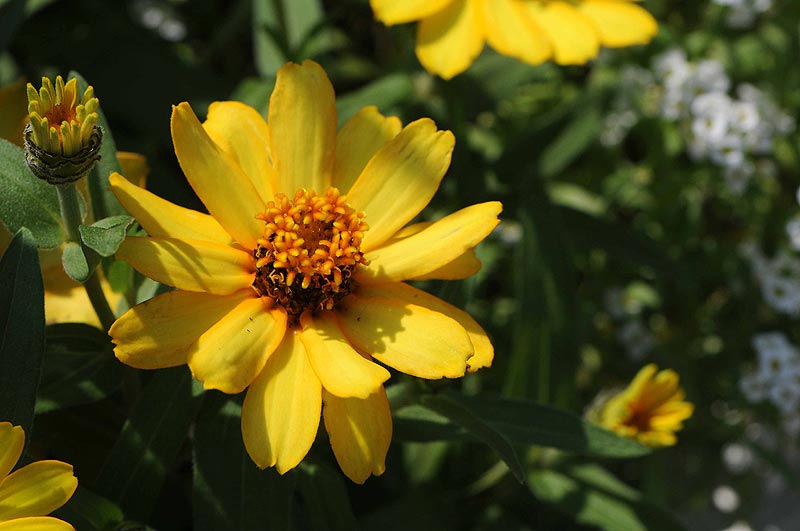 4)こちらも同じ「ヒャクニチソウ(百日草)」で、黄色い色のお花です。