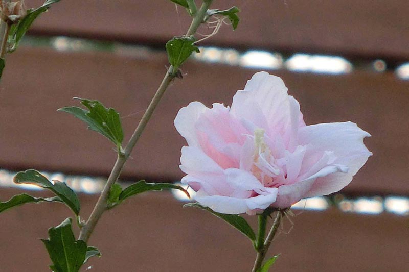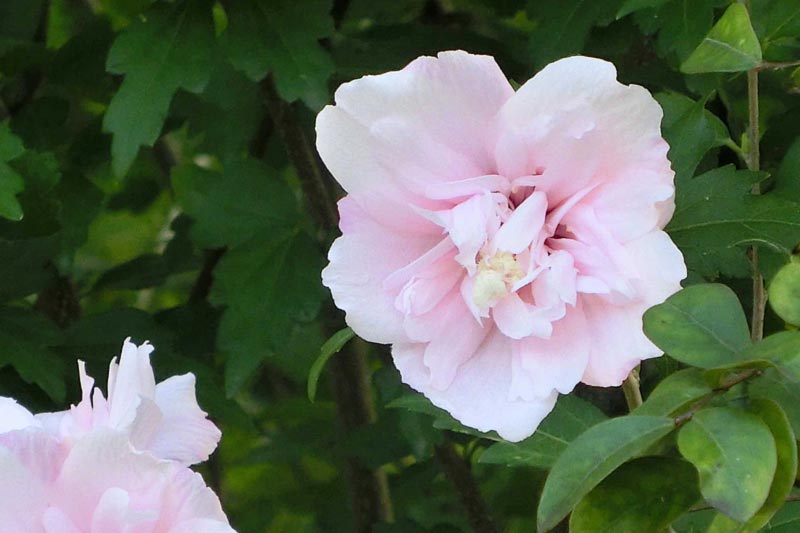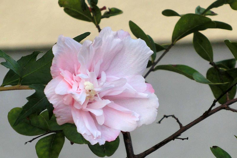 淡いピンクの八重咲き木槿、可愛らしいでしょう。