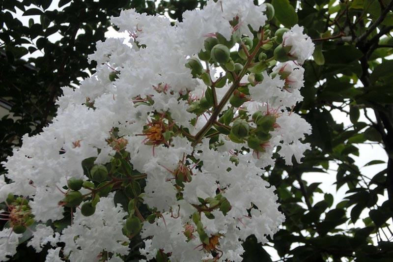 5)こちらは白い花の「サルスベリ(百日紅)」 ミソハギ科です。