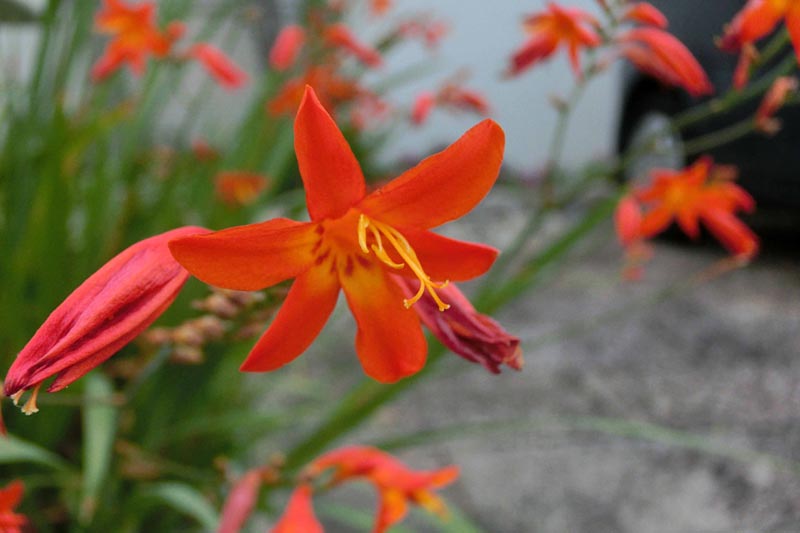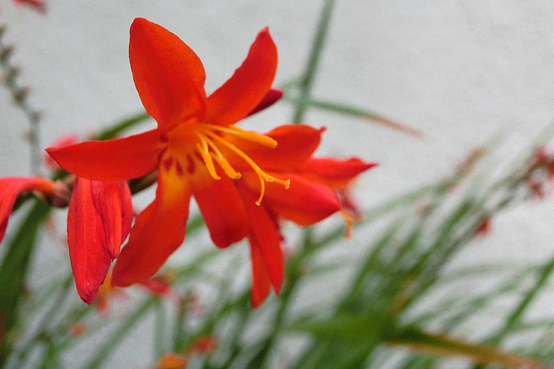 1)最初のお花は 「ヒオウギズイセン(檜扇水仙)」 アヤメ科 別名:ワトソニアア です。