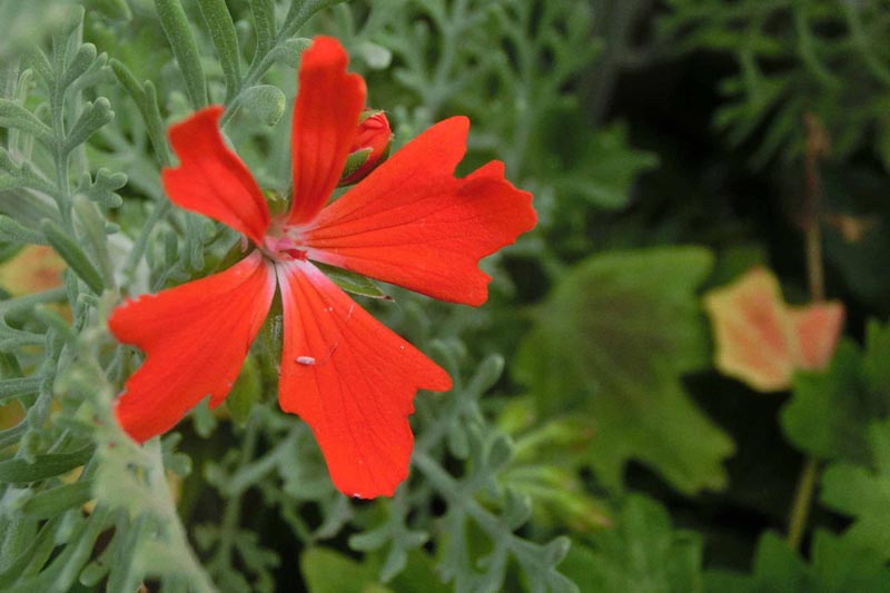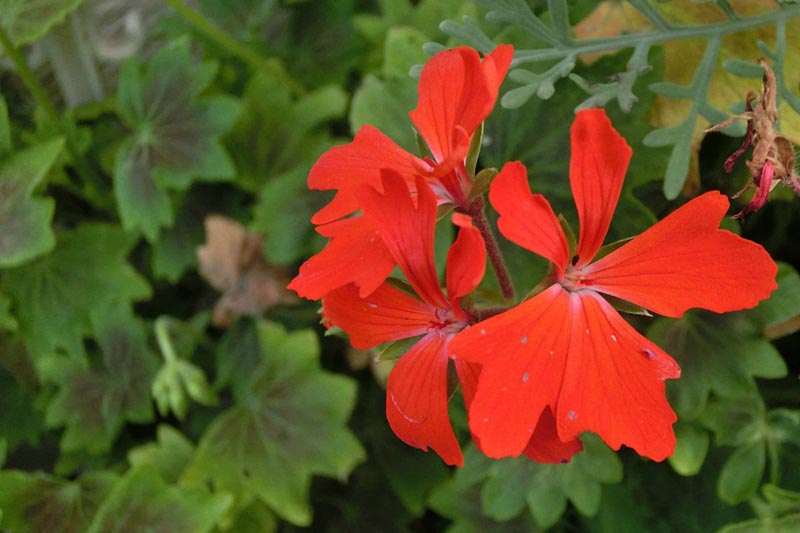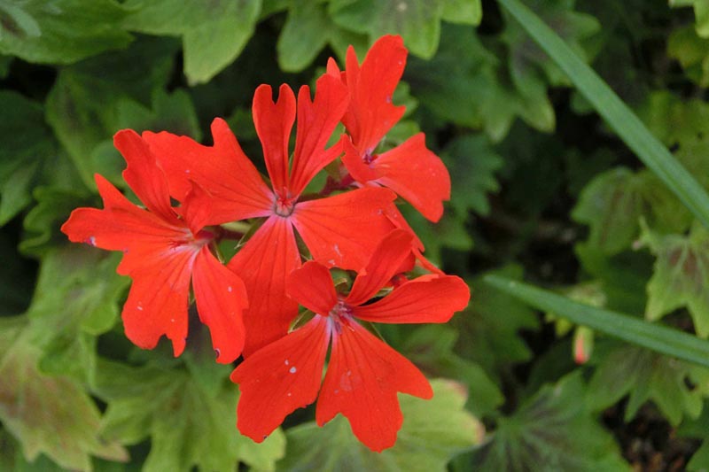 5)こちらも鮮やかな紅色の花を咲かせる「モミジバゼラニウム(紅葉葉ゼラニウム)」 フウロソウ科のお花です。