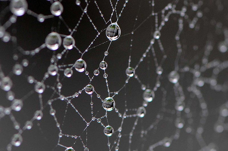 1)降っている最中でないとなかなか撮れないクモの巣の雫です。