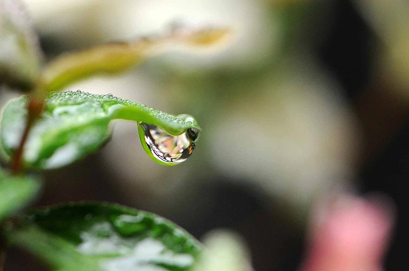 その雨も殆ど止んだので、早速庭に雫を撮りに出てみましたね。