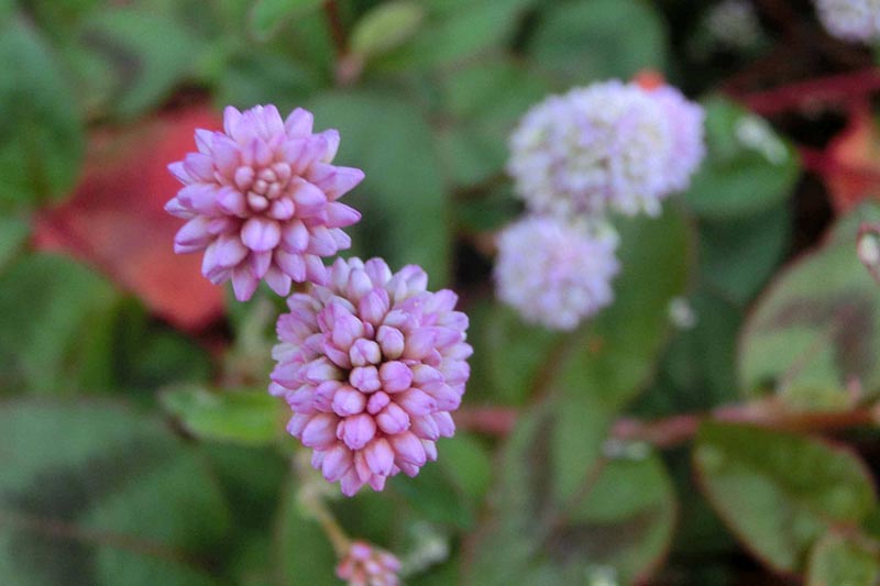 3)花はピンク色で、小さい花が球状に集まった金平糖のような形をしていますね。