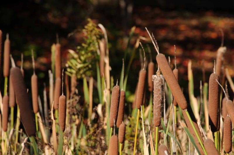 2)ガマの穂って、まるでフランクフルトソーセージを並べているようですよね。