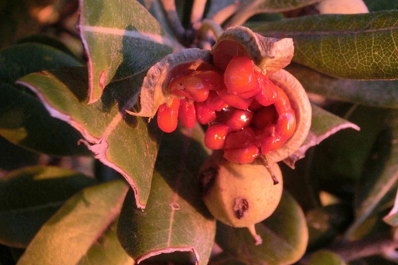 1)最初の実は「モッコク(木斛)」 ツバキ科の弾けた実です。