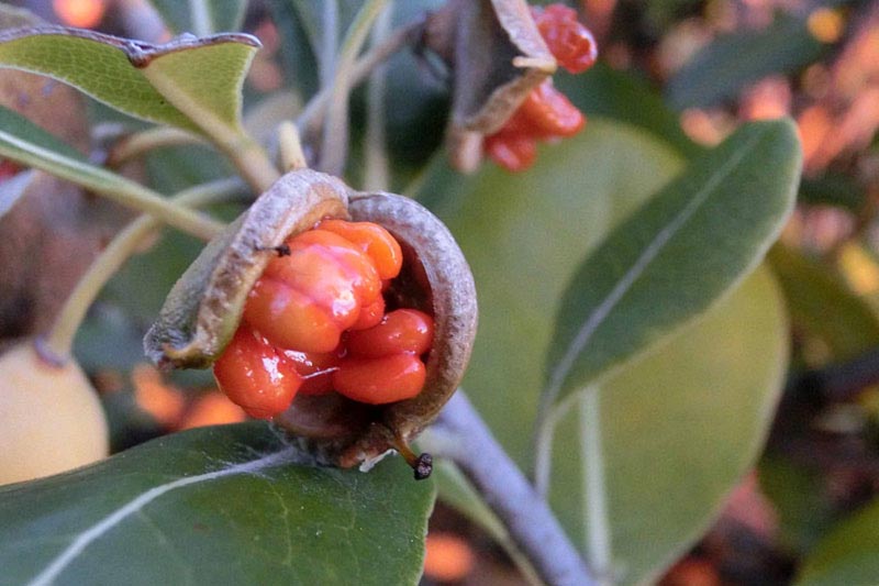 6)こちらは「トベラ(扉)」 トベラ科の弾けた実です。