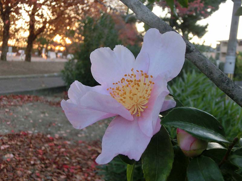 一重のピンクも可愛らしいですし、こちらでは山茶花が花盛りですよ。
