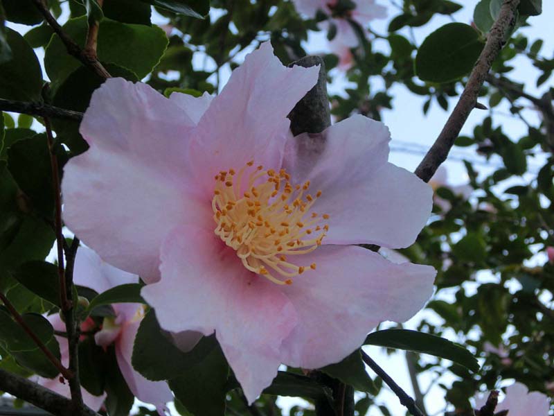一重の薄いピンクのサザンカも綺麗な色ですね!