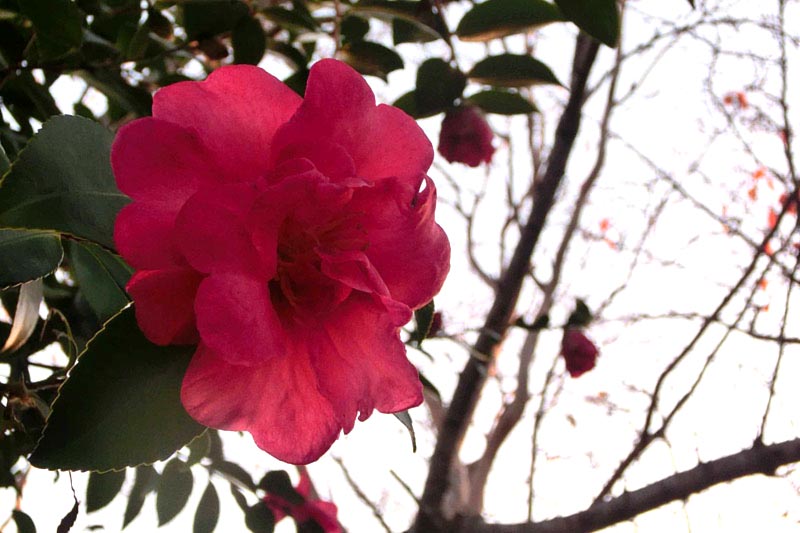 白い山茶花も良いですが、この赤い山茶花も綺麗ですよね。