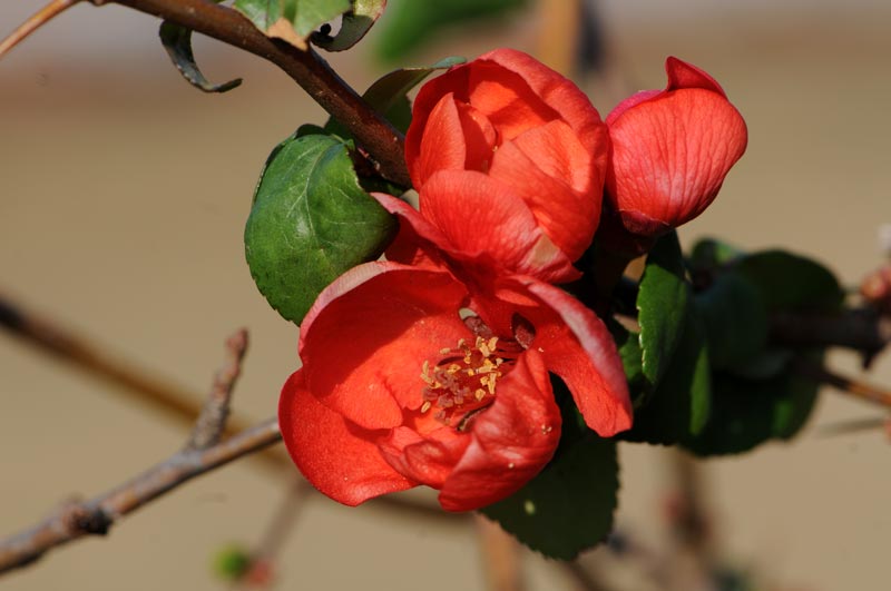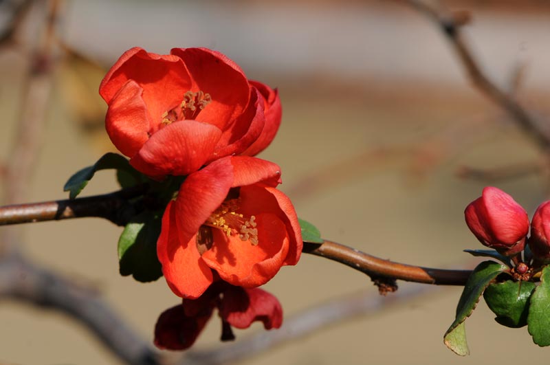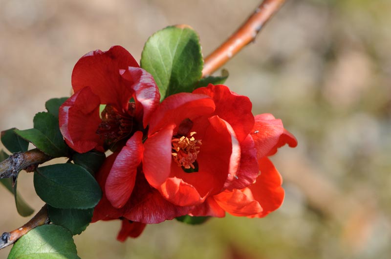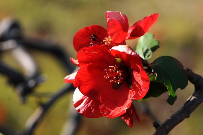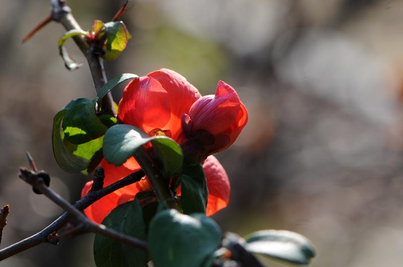 赤い木瓜の花、今の時期では珍しいでしょう。