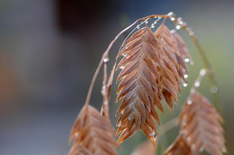 コバンソウの方は雨の雫なのですが、青風蘭の方は散水雫なのですよ。