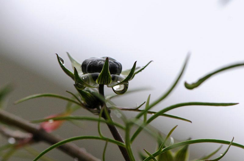 撮るものが無かったものか、小雨の中、花弁や葉っぱに付いた雫を撮って来ました。雫の付いた蕾可愛らしいでしょう。