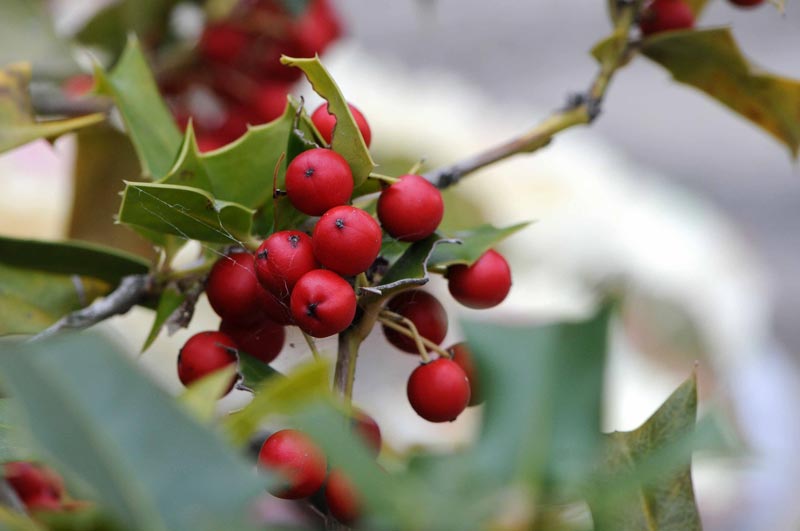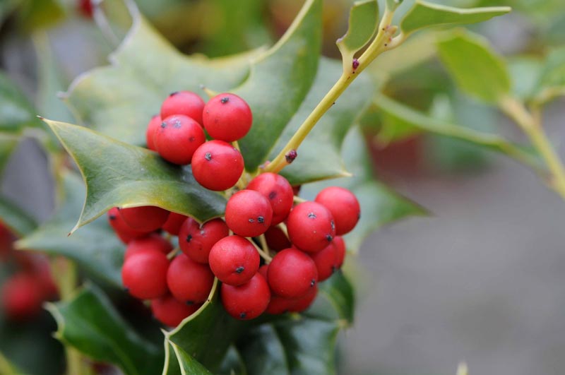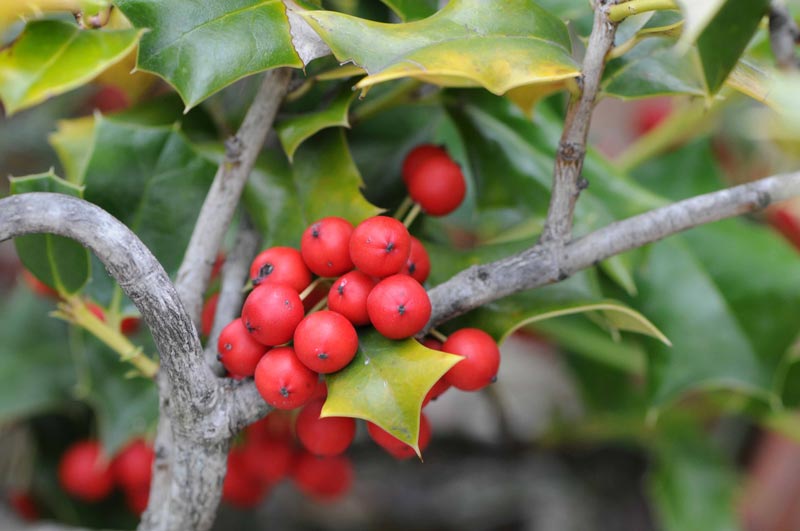 2)ヨーロッパ西部・南部、アフリカ北西部、アジア南西部の原産で、冬になる赤い実が美しく、クリスマスの装飾などにも使われていますよね。
