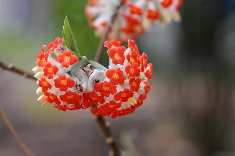 今回は、赤い花のミツマタとベニバナトキワマンサクの掲載です。