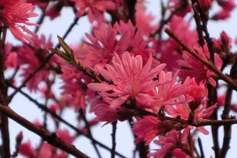 朝日を撮っている公園の側のお宅で、今が満開に咲き誇っている「菊桃」の掲載です。