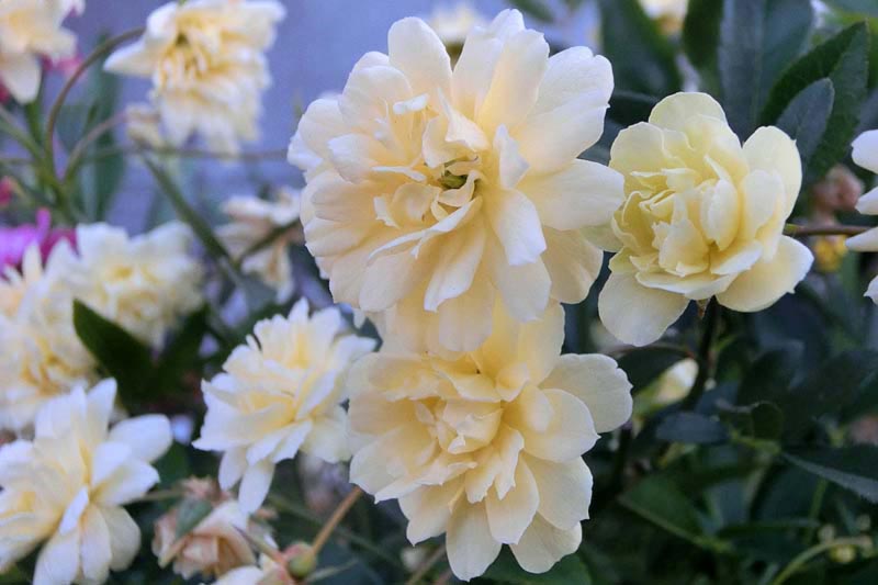 7)中国原産のバラで、常緑つる性低木。枝には棘がないため扱いやすいですよね。
