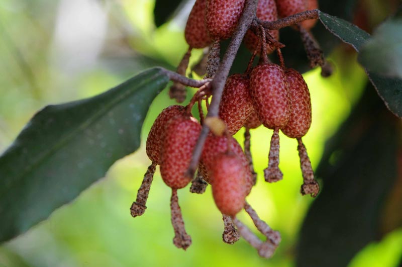 8)開花期は秋。果実は春に赤っぽく熟し食べられる。 公園木、海岸の砂防用、庭木として植栽されています。