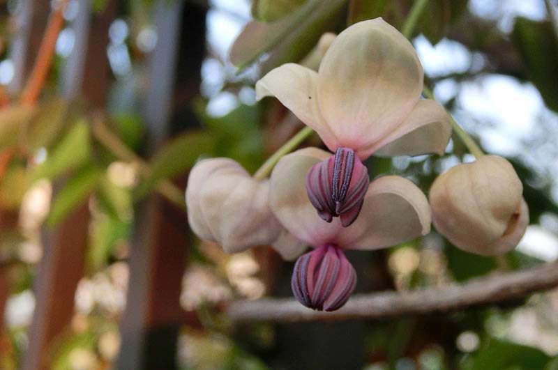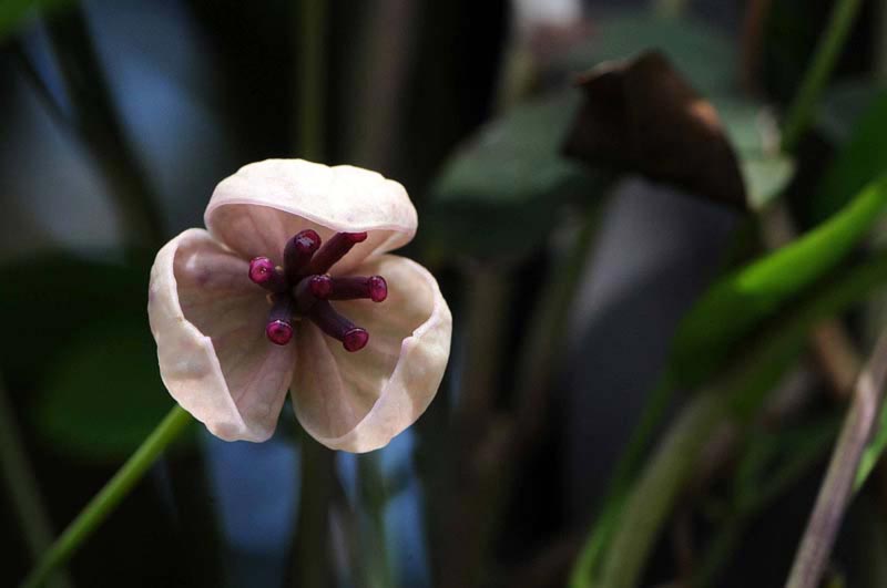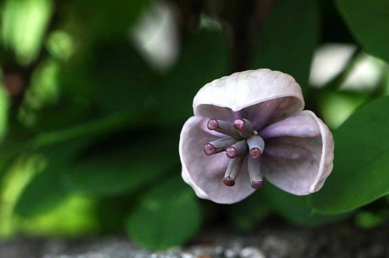 アケビの花って、雌雄異花なのですが、どちらも面白い形をしていますよね。特に雌花の蕊が変わっているでしょう。
