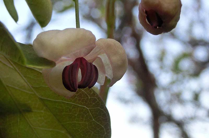 アケビの花って雌雄異花ですが、どちらも特徴があって面白いお花でしょう。実は余り見かけませんが、お花も初見でしたか・・。