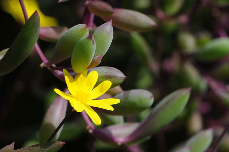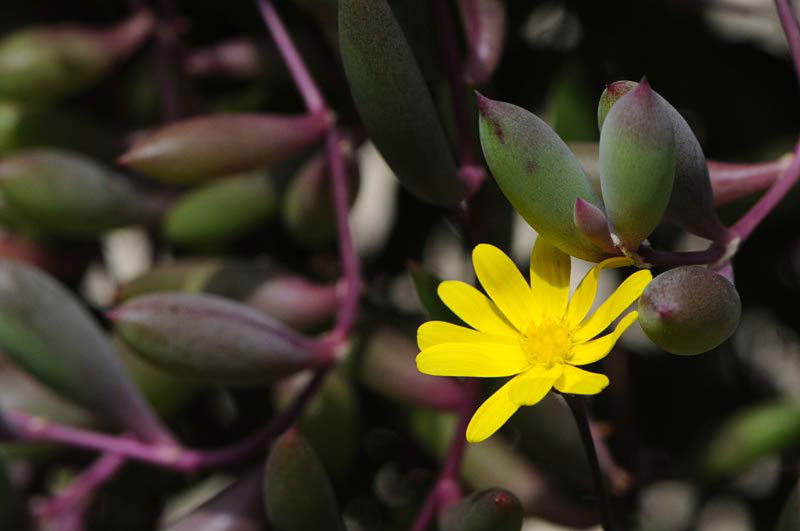 3)朝露や雫が付くと綺麗な多肉植物ですが、お花を見ていると、成る程キク科だなって思いますね。