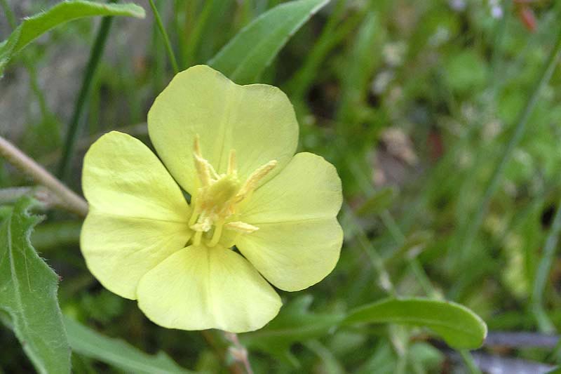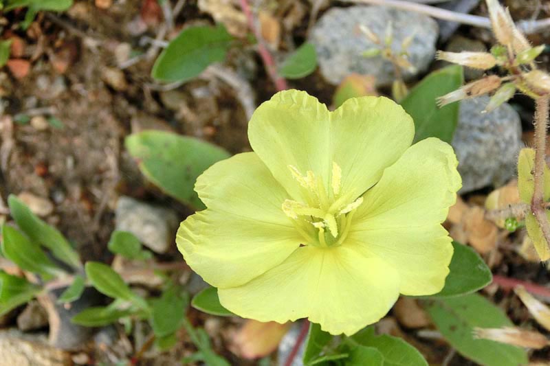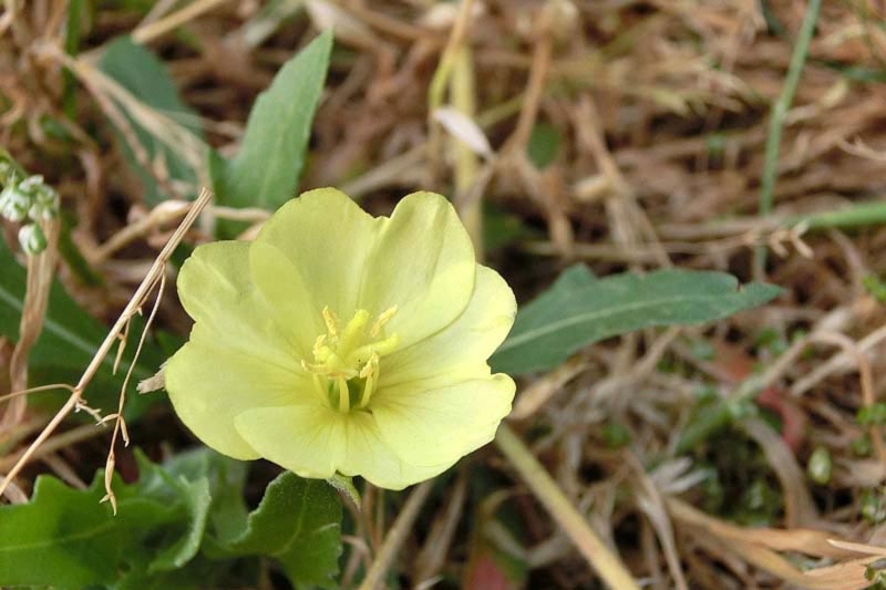 3)茎が地面を匍匐するので、他のマツヨイグサとは異なり、花は薄黄色の4弁花で、花弁はハート型をしています。