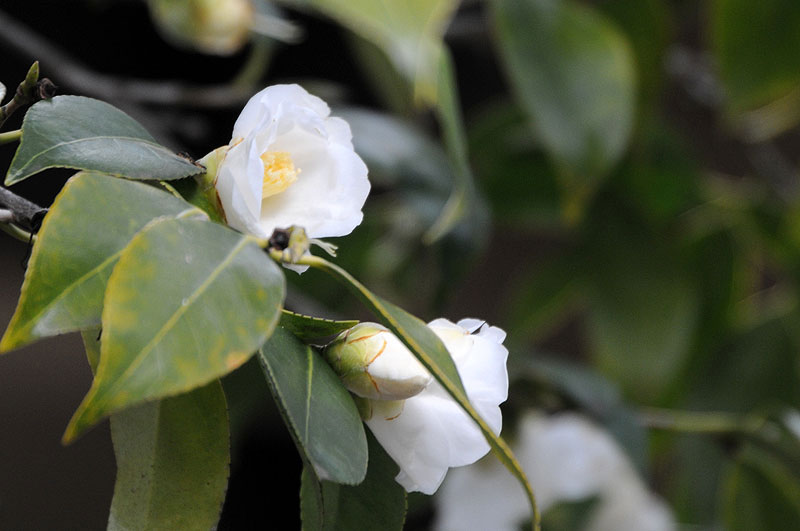 1)「シロワビスケ(白侘助)」 ツバキ科