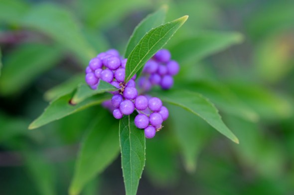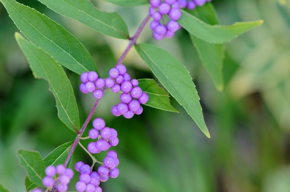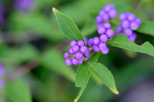 1)今回は、「コムラサキ(小紫)」 クマツヅラ科 別名:コシキブ(小式部)の色付いてきた実です。
