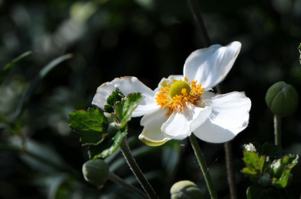 秋明菊 投稿日時: 2012年9月21日 投稿者: shin 秋の花の代表格は、この秋明菊にコスモスでしょうか・・。 いよいよ秋本番と言った感じに成って来ましたね。 1)「シュウメイギク(秋明菊)」 キンポウゲ科 別名:キセンギク(貴船菊)・キブネギク(貴船菊) 2)白く見えるのは花ではなく萼らしいですね。 3)今のところ白い花しか見かけていませんが、他の色のも探して来たいと思っています。 4)でも私は、この白いシュウメイギクが一番好きなのですがね。