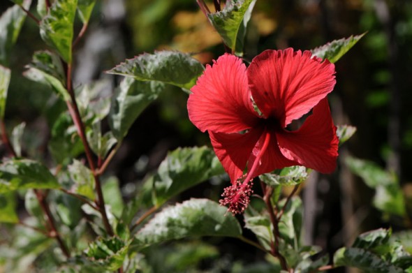 4)昨日撮って来た斑入りの「ハイビスカス」ですが、花弁の感じも違いますよね。