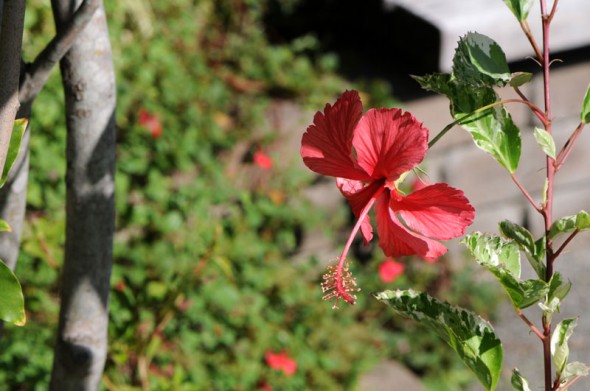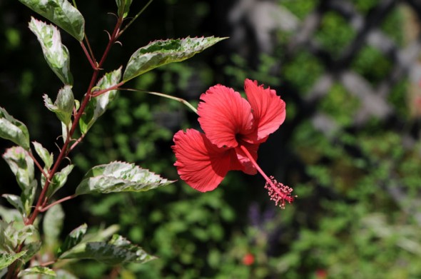 以前撮って来ていたのは、色合いは可愛らしいですが、普通のハイビスカスで、昨日撮って来たのは、花はともかく葉っぱが斑入りなのですよね。斑入りのハイビスカスって初めて見ましたよ。