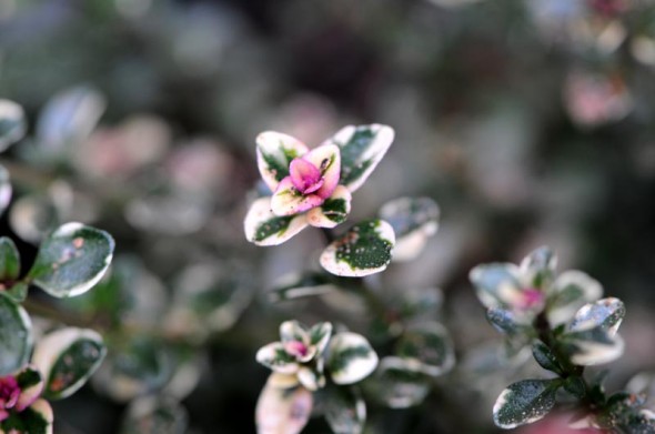 今回はもうネタ切れで、我が家にあった「斑入り葉タイム」を撮って来ました。
