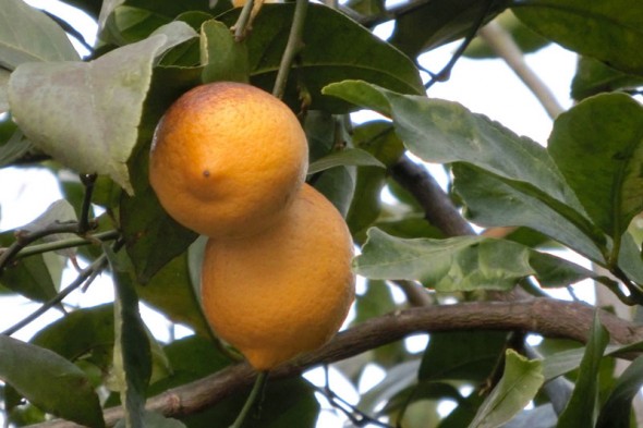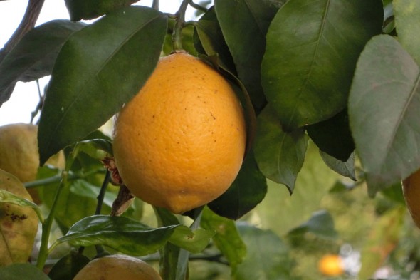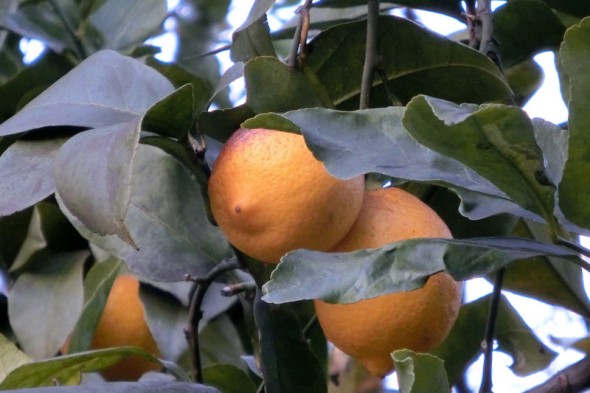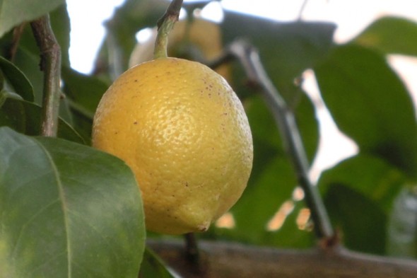 レモンの実 投稿日時: 2013年1月21日 投稿者: shin 今のお花の少ない時期、完全に掲載ネタ切れに・・・(汗) そこで散歩帰りに見かけたレモンの実を撮って来て見ました。 レモンの花だと良いのですが、今の時期は仕方ないですよね~・・。 1)「レモン(檸檬)」 ミカン科の実です。 2)花は、ミカンの白い花と違い、薄紫がかった綺麗な花なのですがね。 3)先だっての金柑と同じで、このお宅のも収穫をしているのを見かけませんが、如何されているのでしょうかね。 4)と言っても、すっぱいので私も好きでは無いですがね。