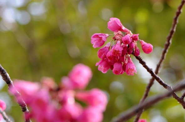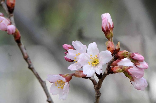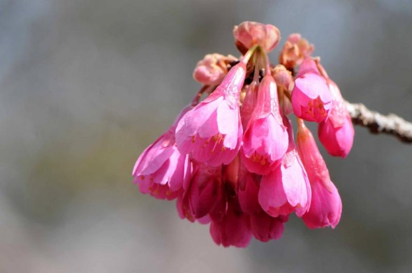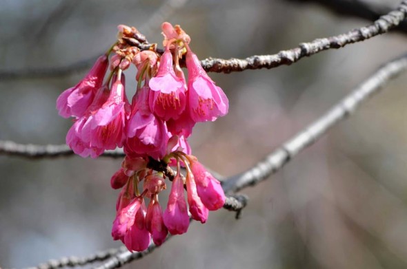 2)これでも精一杯咲いている状態なのですよね。寒緋桜は、余り開いて咲かないのが特徴でしょうか・・。