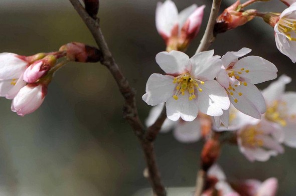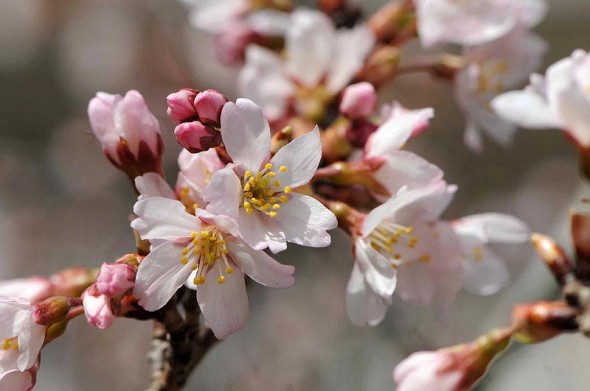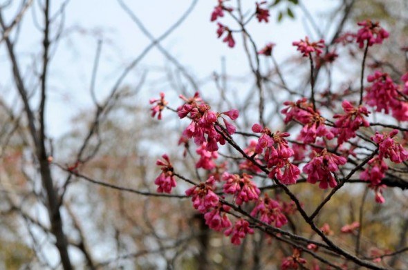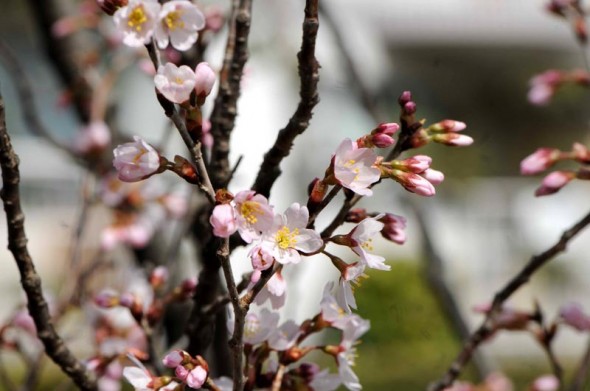 1)最初の桜は「カンヒザクラ(寒緋桜)」 バラ科からです。