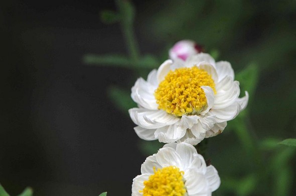 1)最初のお花は、我が家の庭で咲いていた「ハナカンザシ(花簪)」 キク科のお花からです。