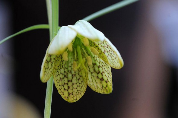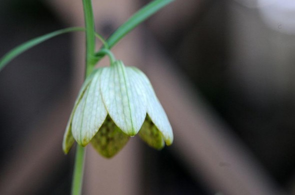4)こちらは、「バイモ(貝母)」 ユリ科 別名:アミガサユリ(編み笠百合)のお花です。