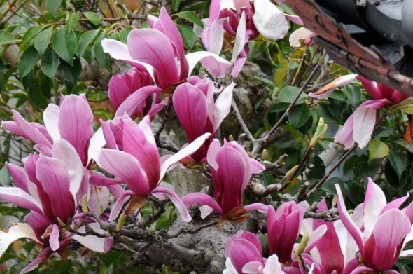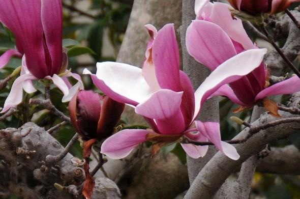 紫木蓮 投稿日時: 2013年4月4日 投稿者: shin 今朝は、ご近所で咲いていた紫木蓮の掲載です。 昨日は風が強く何も撮れなかったものか、今日は何か撮りに行って見ようかと^^; そろそろ染井吉野以外の桜も咲きだす頃ですしね。 1)「モクレン(木蓮)」 モクレン科 別名:シモクレン(紫木蓮)です。 2)ハクモクレンやコブシとはまた違った華やかさのあるお花ですよね。 3)我が家の二階の窓から見下ろすようにして撮ったのですが、それでも花の中って撮れないですね。 4)花びらの中は白で外が紫って、艶やかな感じだと思いますよ。