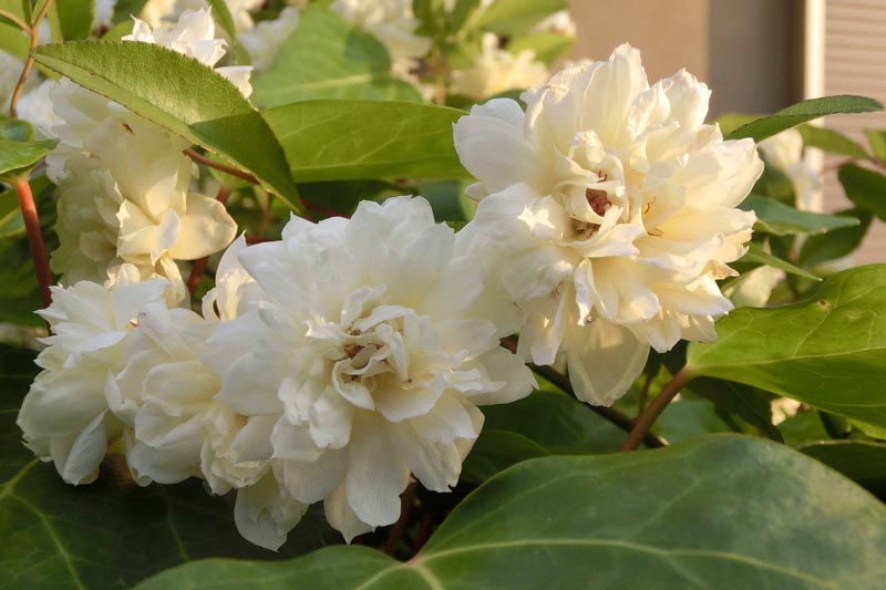 1)最初は、白い花の「モッコウバラ(木香薔薇)」 バラ科です。