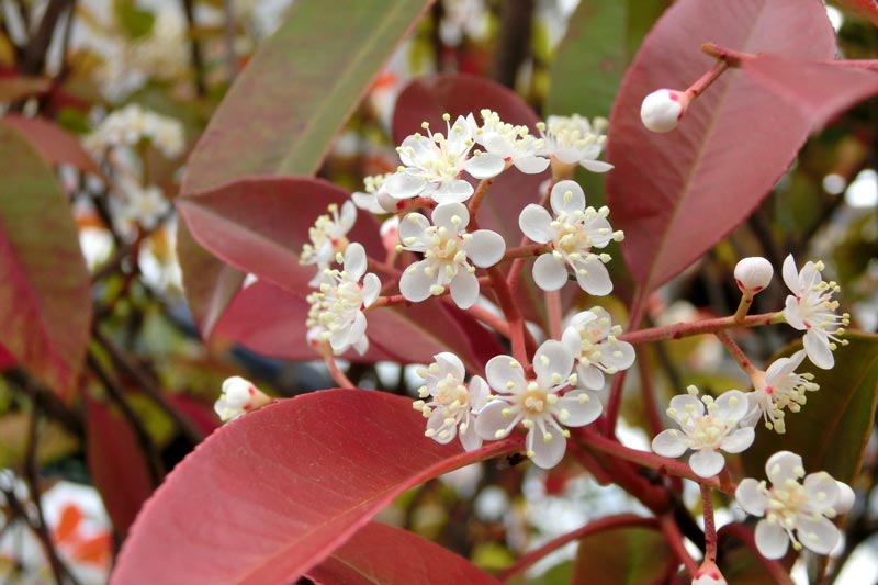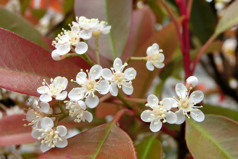 4)こちらは「ベニカナメモチ(紅要黐)」 バラ科のお花です。